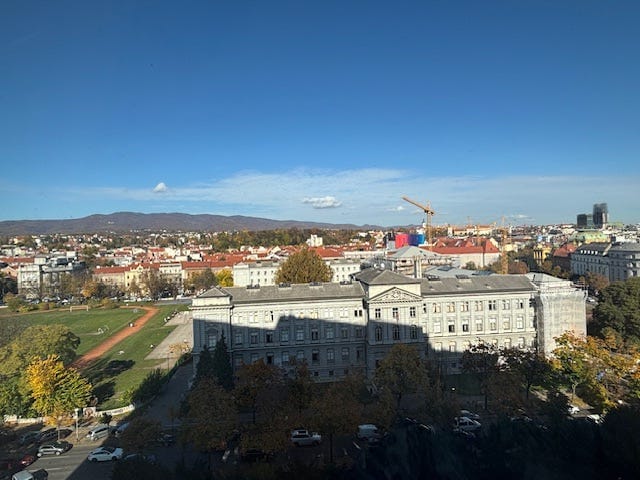 As I sat in my hotel room in the Croatian capital city of Zagreb, through the open window I heard the sounds of children at play. Looking out at the city spread out below the nearby mountain, the sounds of the children and the picturesque view provide a sense of calmness with its numerous red tiled roofs, diverse historic architectural buildings, and occasional church towers, intermingled with several green spaces adding a touch of autumnal colors from the changing tree leaves. All combined, these sights and sounds prompt a release of the stresses of daily life and the thought, “just breathe”, a reminder to slow down and take a breath, especially in today’s stressful times. The previous evening, we strolled through the lower town, Donji grad, admiring the numerous al Fresca cafes, bars, and restaurants. The coffee culture here is as strong as the coffee itself. We stopped at an outdoor cafe for a coffee and people watching in the bustling Cvjetni Trg (public plaza) by an Orthodox Church, embracing the mantra, “just breathe.” It was refreshing.